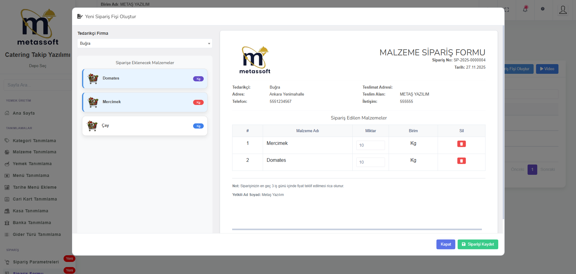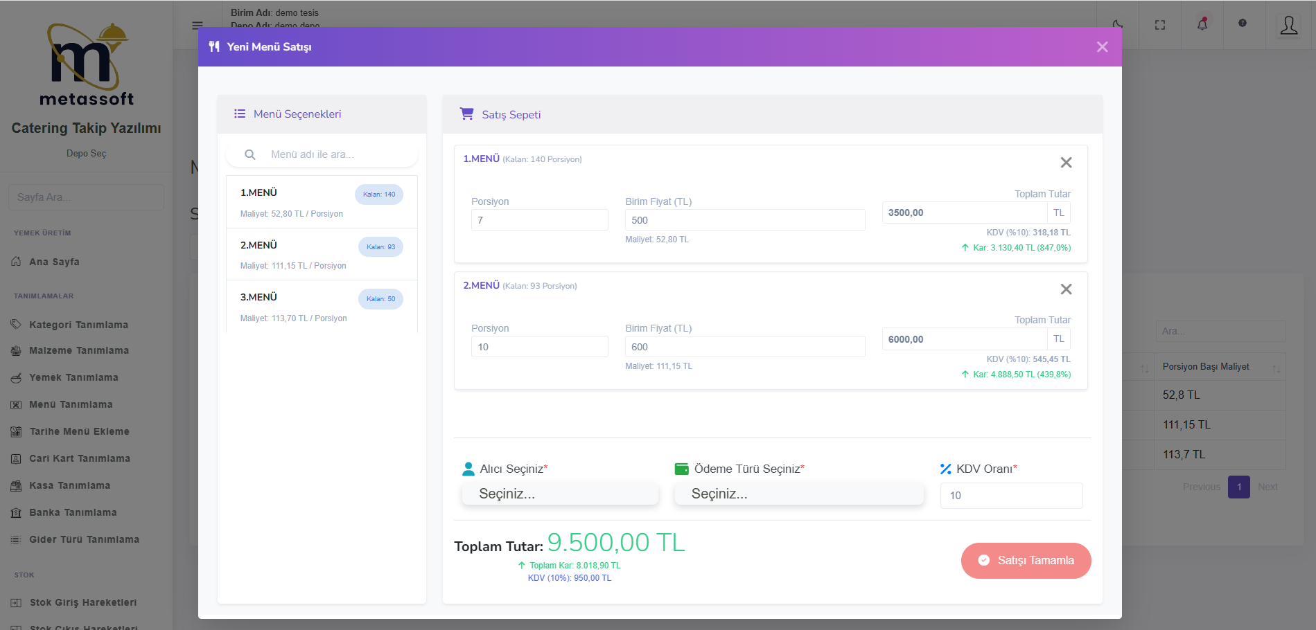 Belirlediğiniz Stok kartları ve gramajlarla istediğiniz yemekleri üretin.