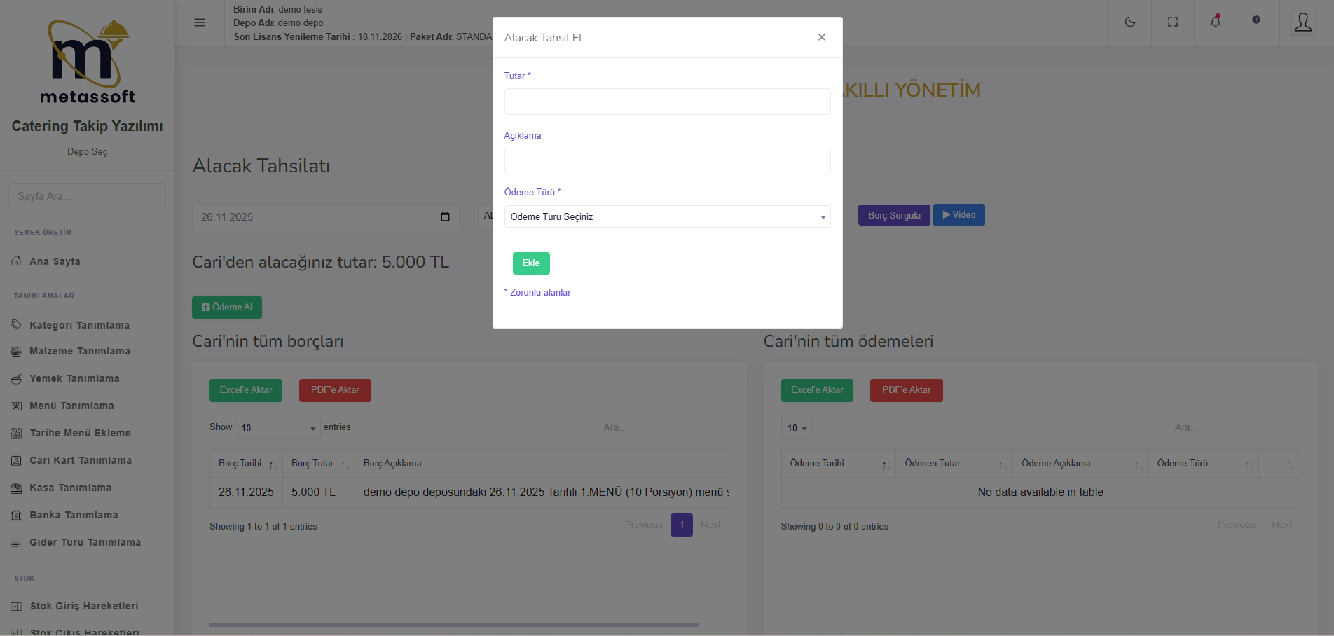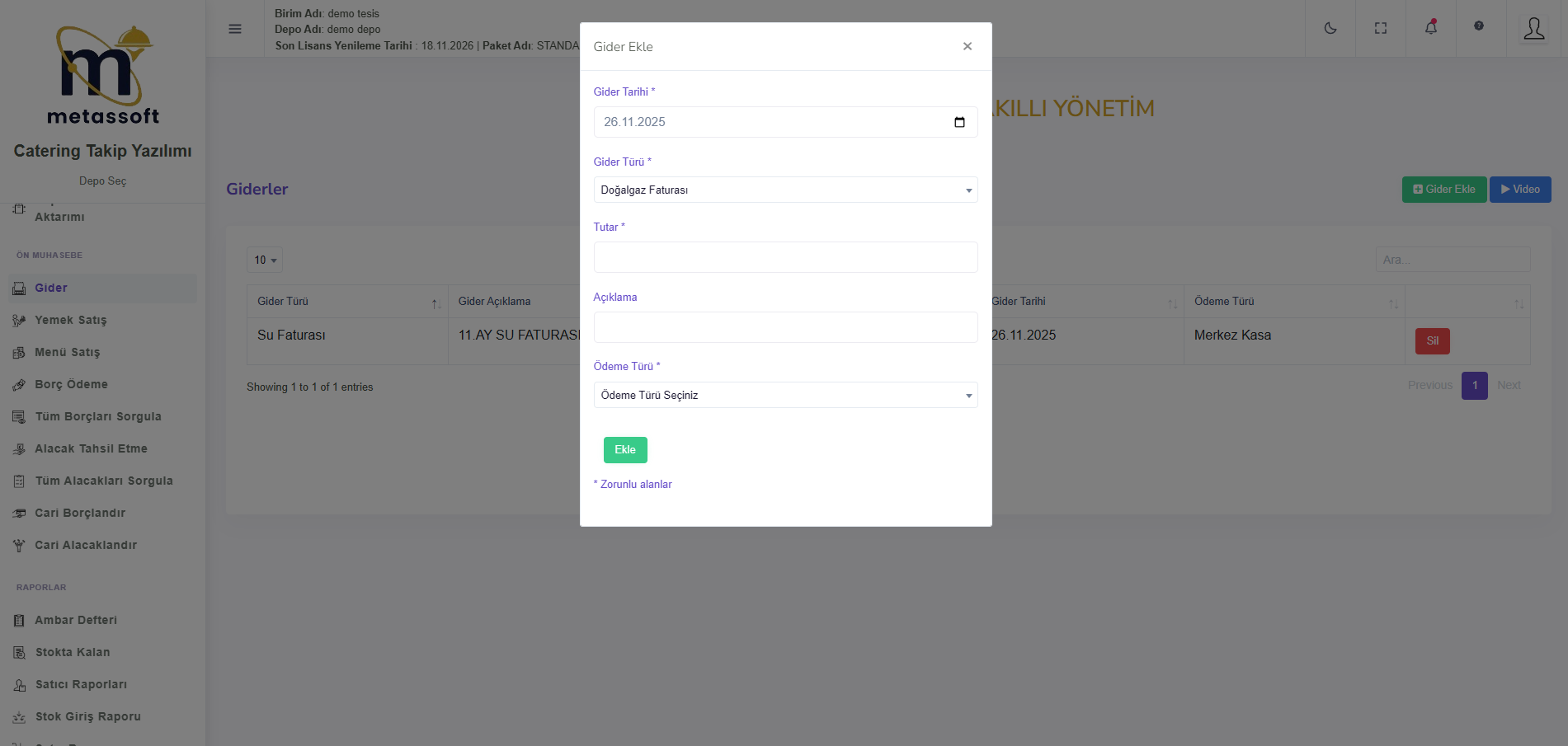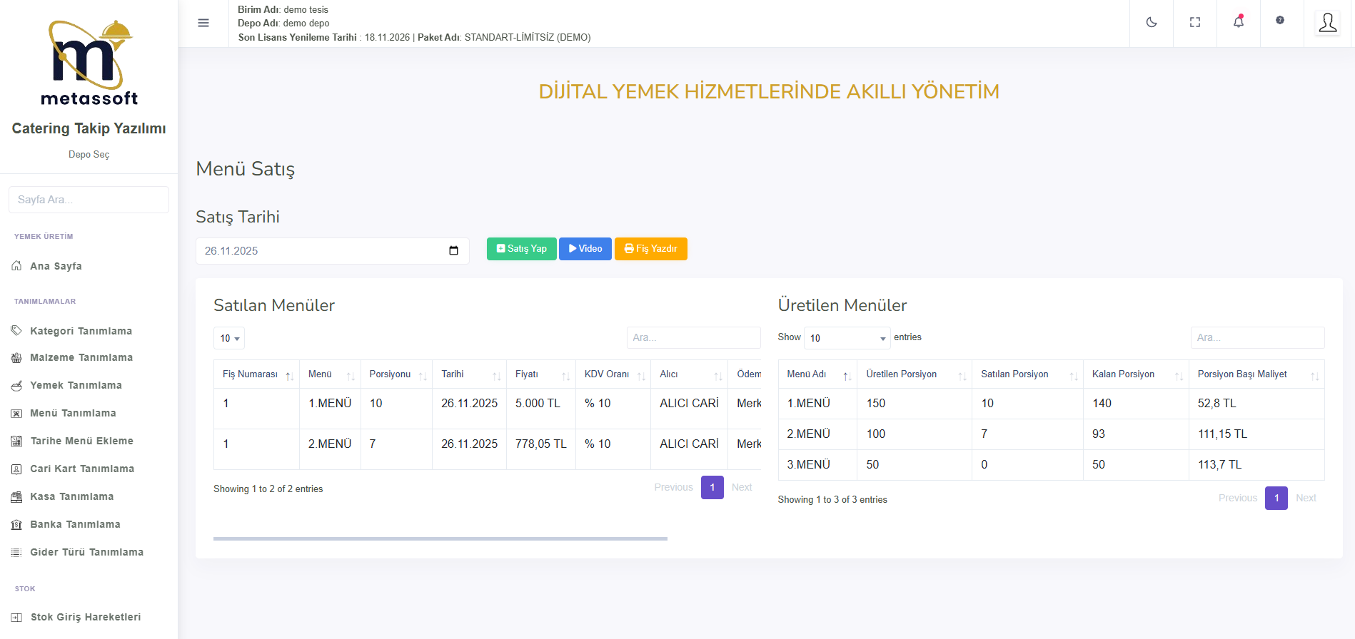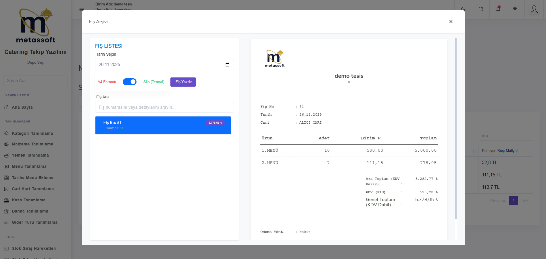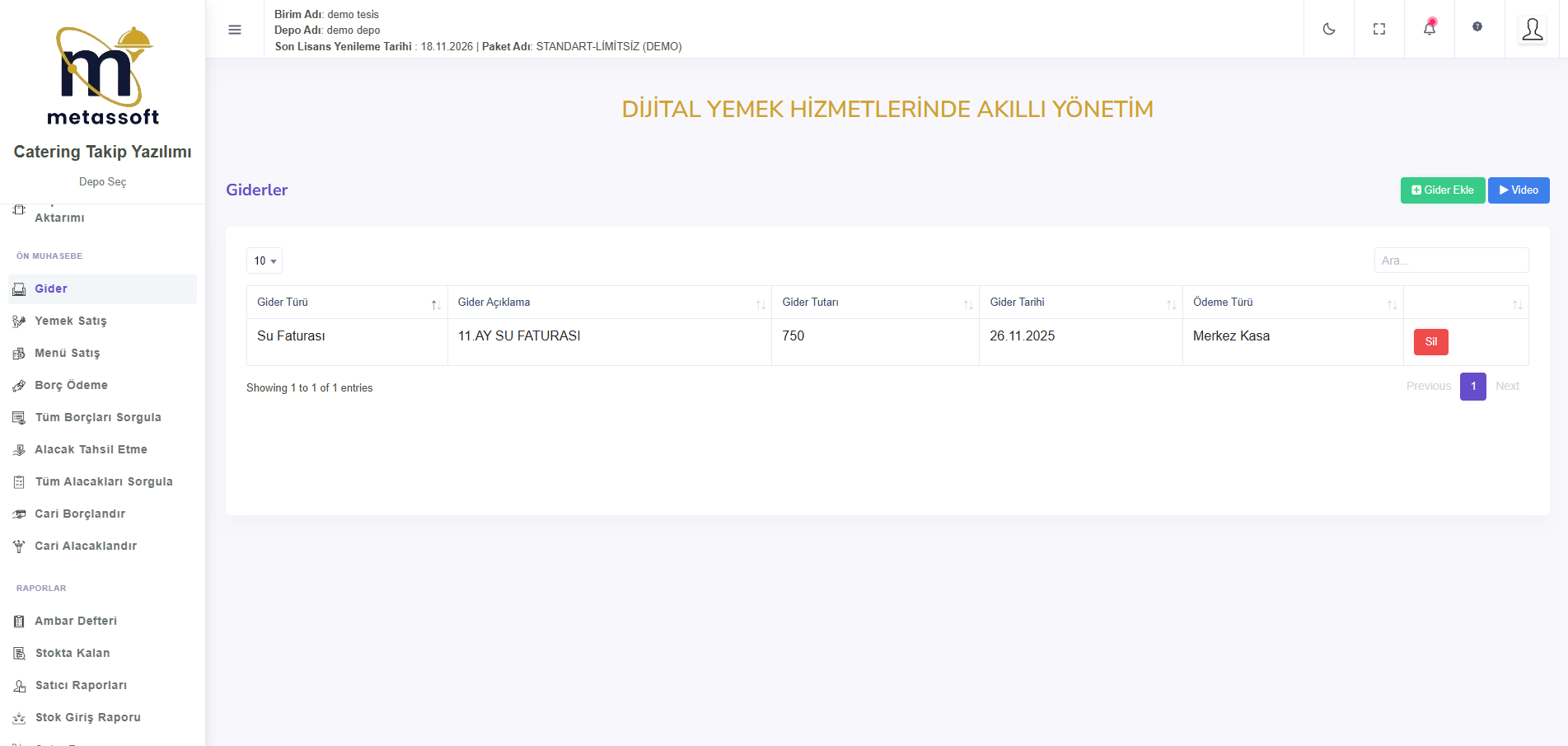 Ön muhasebe modülünde, gider kayıtları girilir ve yemek ile menü satışları yapılır. Bu süreçte, borç ödemeleri ve alacak tahsilatları düzenli olarak yapılır. Böylece, işletmenin mali akışları takip edilir ve finansal işlemler şeffaf bir şekilde yönetilir.