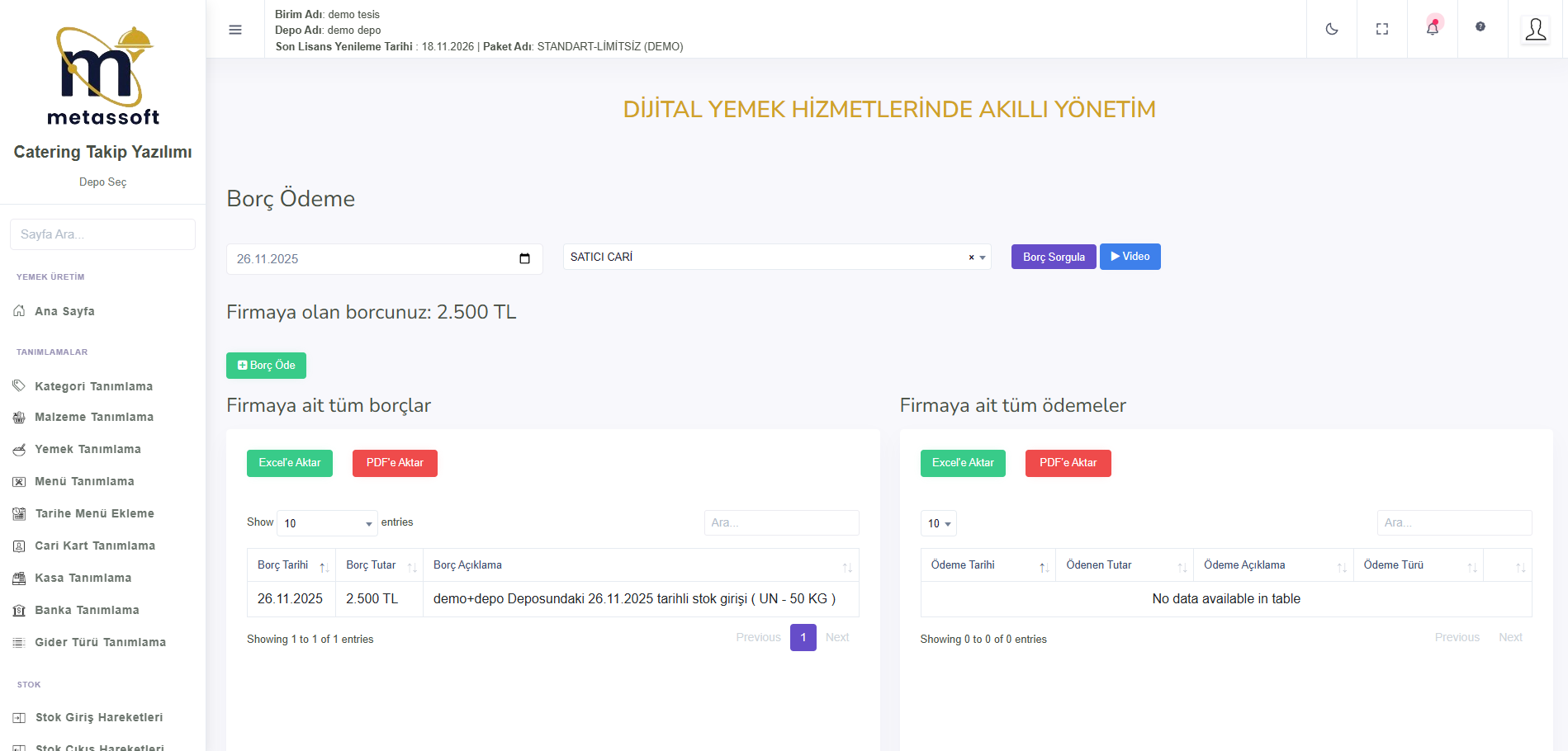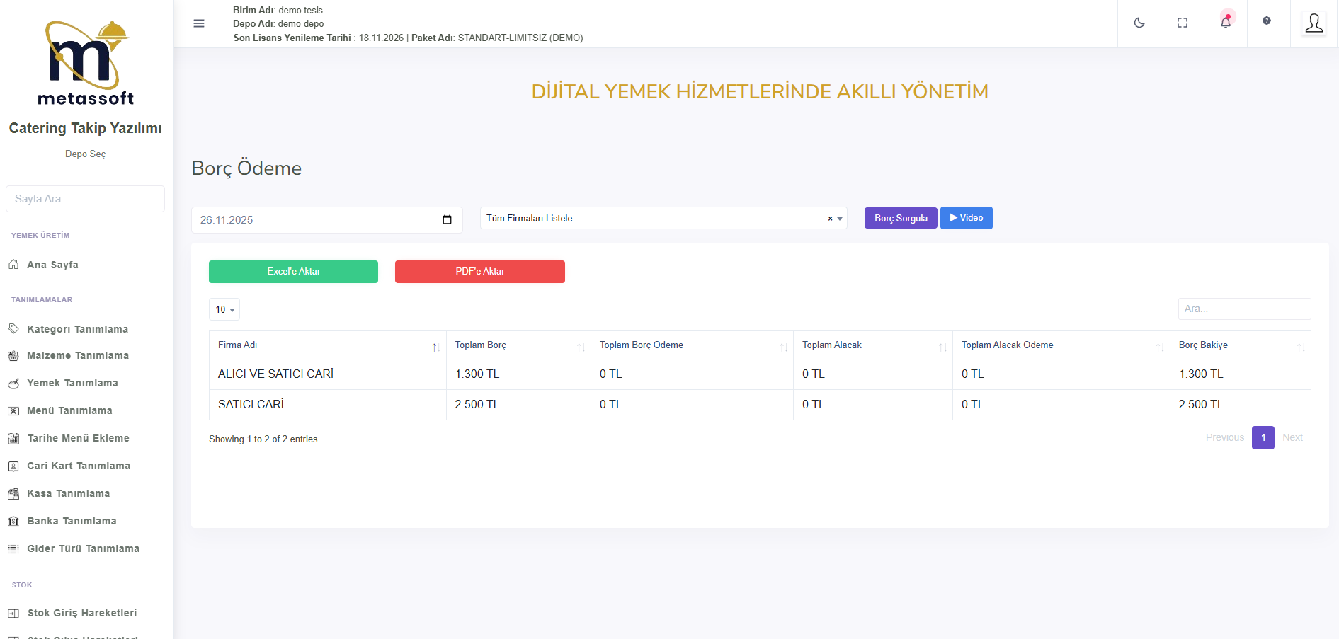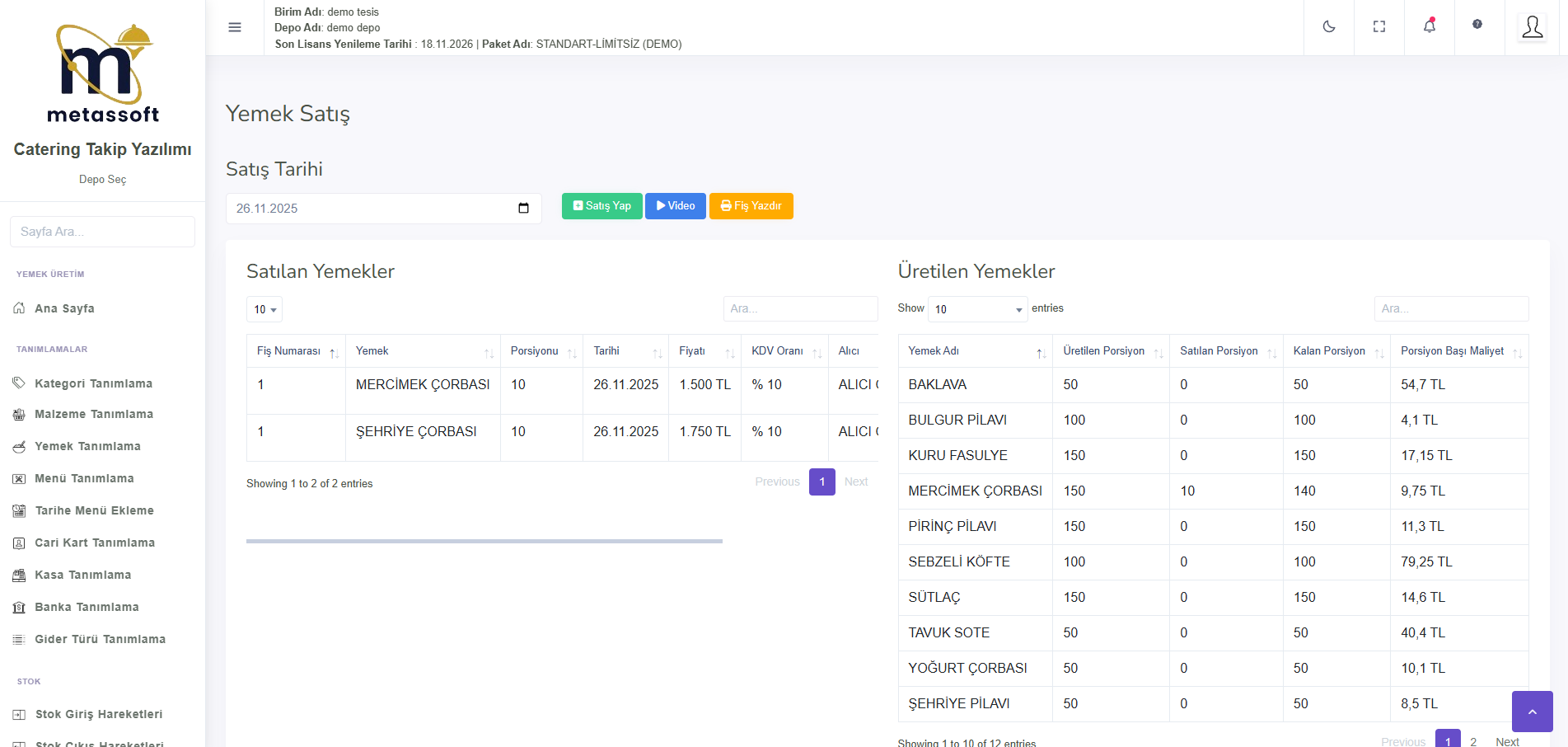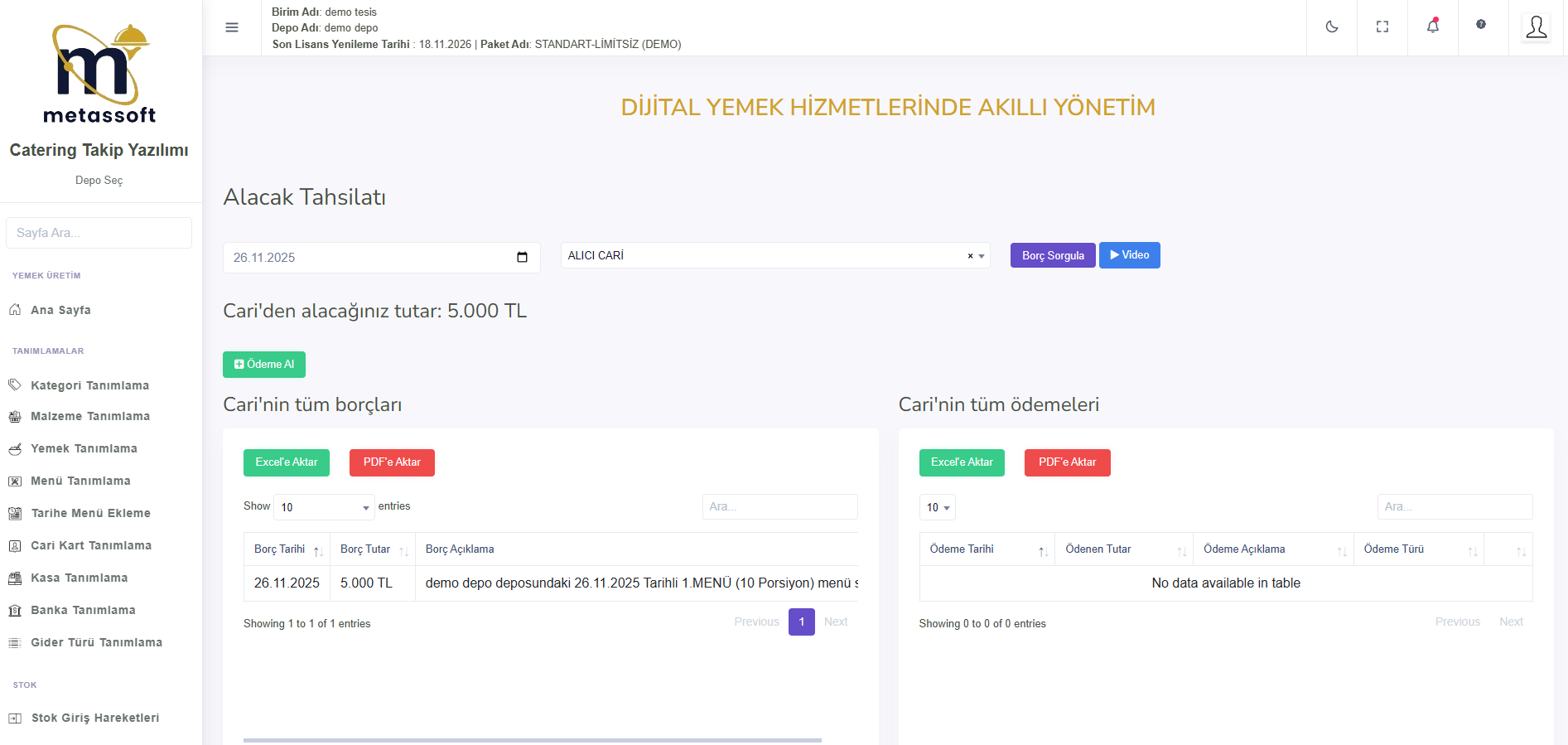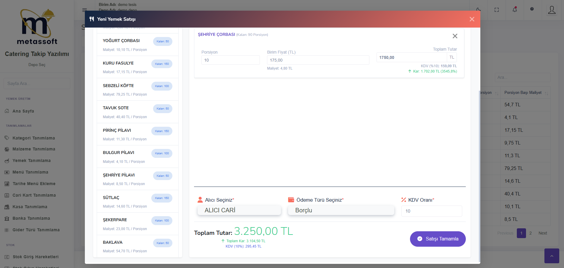 Ön muhasebe modülünde, gider kayıtları girilir ve yemek ile menü satışları yapılır. Bu süreçte, borç ödemeleri ve alacak tahsilatları düzenli olarak yapılır. Böylece, işletmenin mali akışları takip edilir ve finansal işlemler şeffaf bir şekilde yönetilir.
