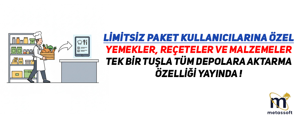 Yemek, reçete ve malzemeleri tek tuşla tüm depolara aktarma özelliği limitsiz paket kullanıcılarına sunuldu.